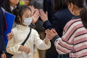 じゃんけんに3回勝った人は、先に並んでいる人たち全員とハイタッチをしてから列に並びます。
