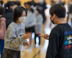 ふたば生徒会連合メンバーが、児童と生徒の交流がより深まるようなアイスブレイクを企画してくれました。
