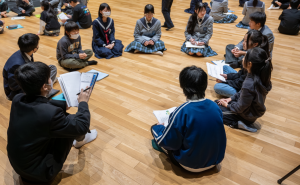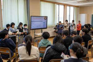 校種混合で合計72グループに分かれ、各グループの中学生と高校生が進行と記録を担当。