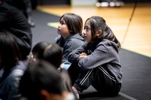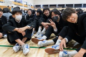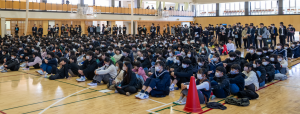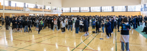 当日、ふたば未来に到着した児童生徒はアリーナへ移動、学校ごとに整列します。