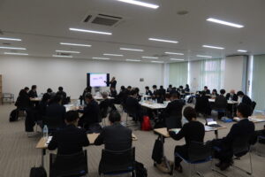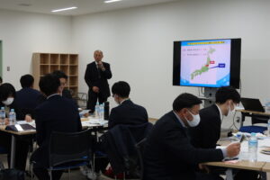 はじめに、川内村教育委員会 堀本晋一郎 教育長より開会のご挨拶をいただき、「震災の記憶と双葉郡教育復興ビジョン」と題して、東日本大震災当時の町や学校の様子、避難に至るまでの経緯や学校での初動対応、避難生活の中で生徒や教職員が直面したさまざまな困難について、実体験に基き、当時の写真を交えながらご講話いただきました。